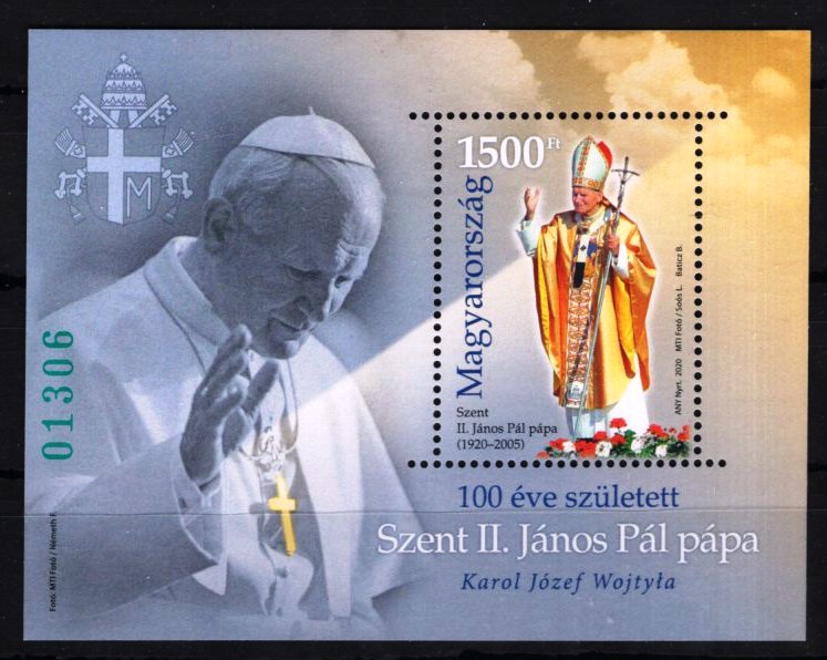 ** 2020 100 éve született II. János Pál pápa blokk zöld sorszám