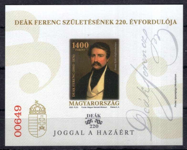 ** 2023 Deák Ferenc blokk vágott piros sorszám