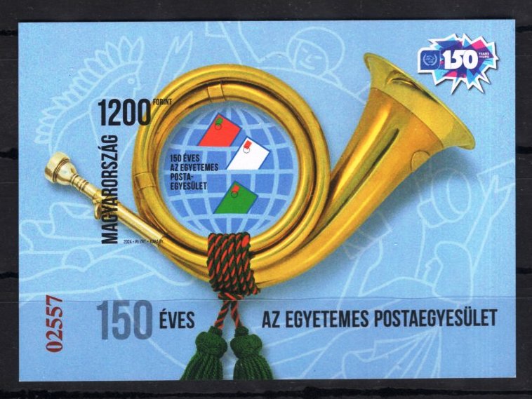 ** 2024 150 éves az Egyetemes postaegyesület blokk vágott piros sorszám