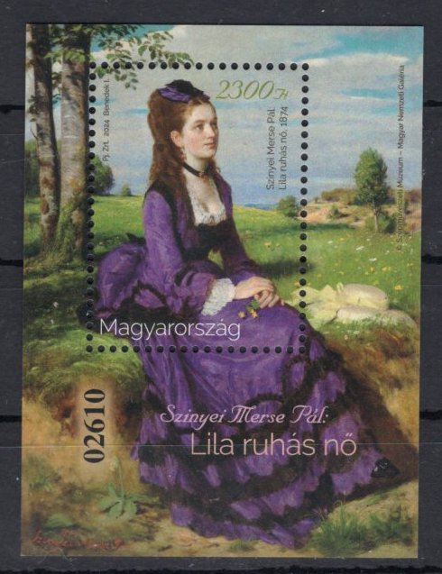 ** 2024 150 éves Szinyei Merse Pál -Lila ruhás nő festménye blokk