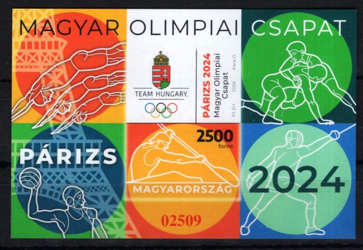 ** 2024 Olimpia blokk -Párizs vágott piros sorszám