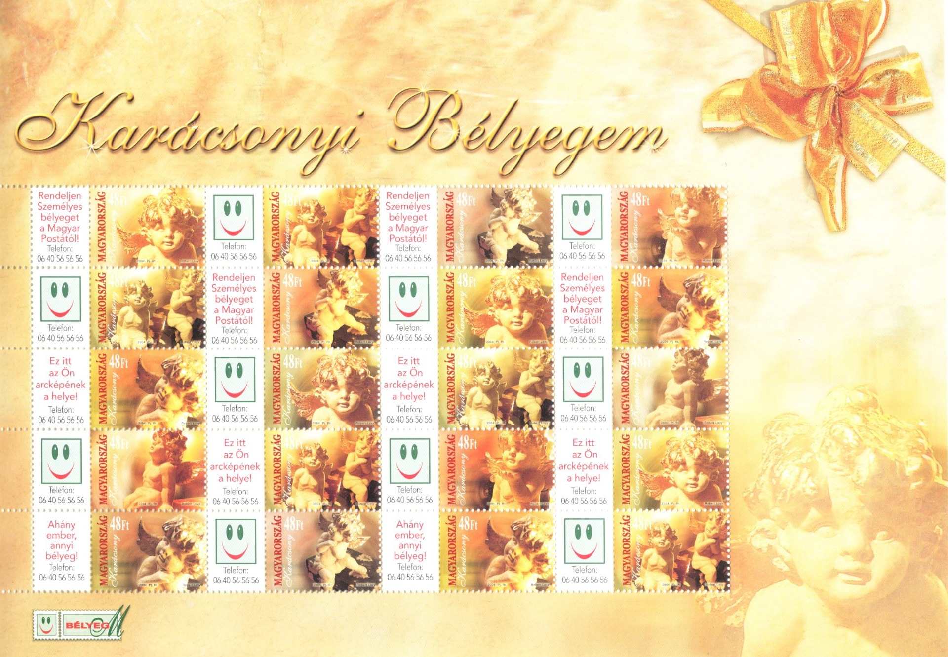 ** 2004. Karácsony bélyegem I. Angyalkák teljes ívben sorszám nélkül